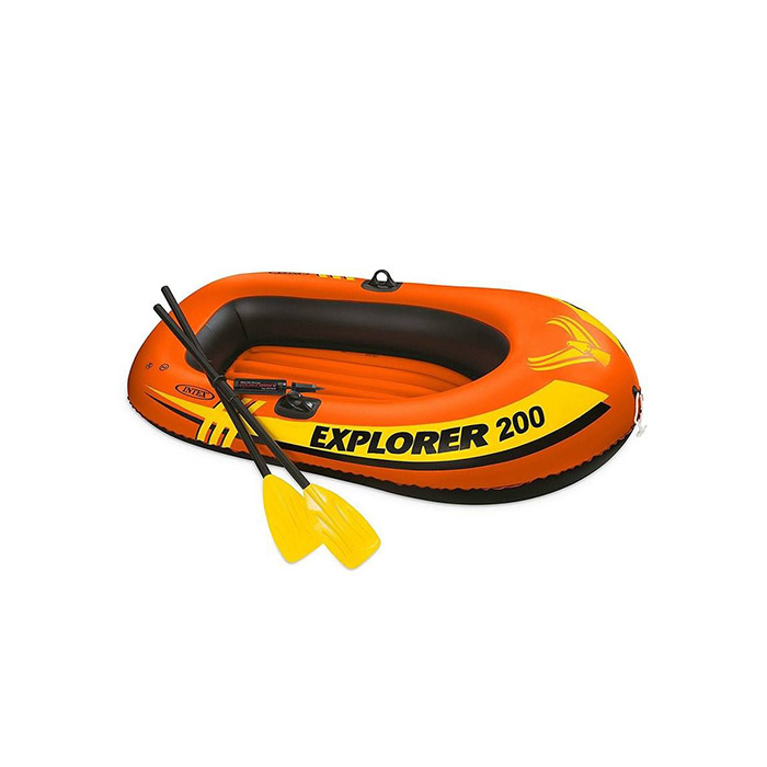 قایق بادی اکسپلورر پرو 200 محصولی ساخته شده از جنس PVC با روکش برزنتی و طرح چرم که از ظرفیت دو نفره بهره مند است. قایقی با رنگ بندی شاد و بدنه ای با کیفیت که توان استفاده از آن را در آب های آرام نیز می دهد. البته از این قایق می توان در استخر های مختلف بزرگ نیز استفاده کرد.
